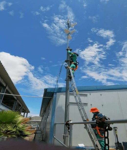 Above: Installation of beaming outdoor antennas